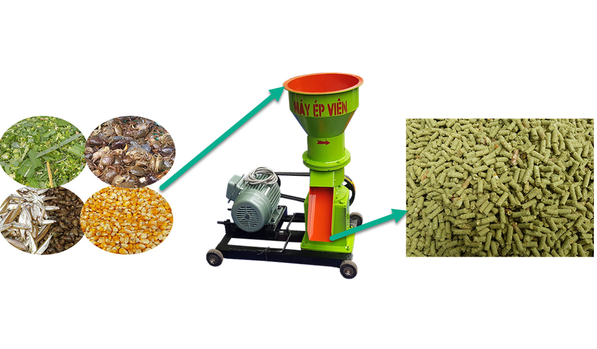Đáp ứng nhu cầu thức tế của ngành chăn nuôi , Máy ép cám viên đã có mặt tại Maynhanong.vn, máy có thể ép các nguyên liệu: bột cám, các loại rau, cua, cá, ốc…