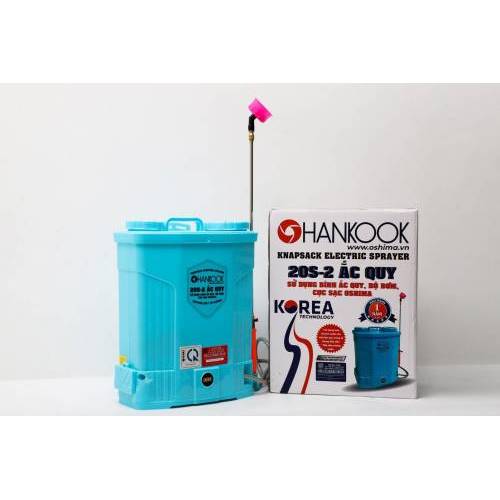 Máy phun thuốc trừ sâu, côn trùng điện HANKOOK 20S-ắc quy Xanh Bình ắc quy 12V8Ah